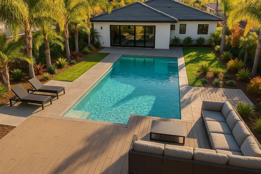 In San Diego and Southern California, where outdoor living is a year-round experience, pool decks must withstand sun exposure, temperature shifts, and moisture — all while looking beautiful. Let’s explore the best decking materials, their pros and cons, and which one fits your home’s style and budget.