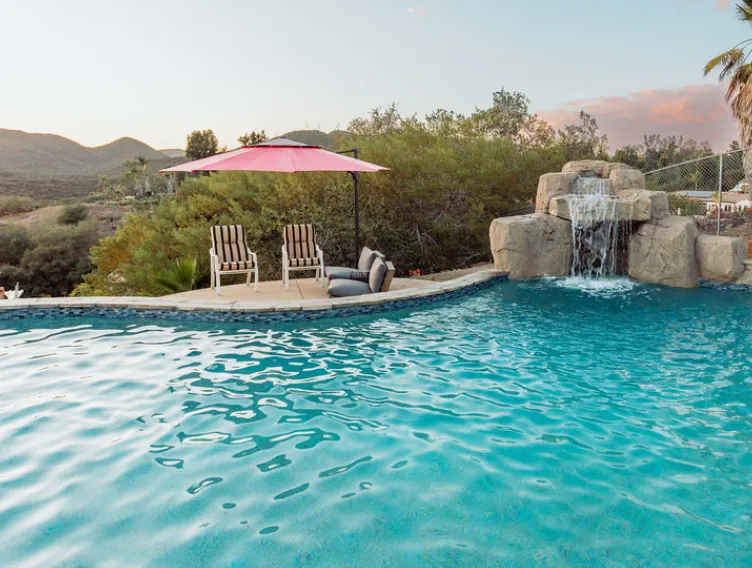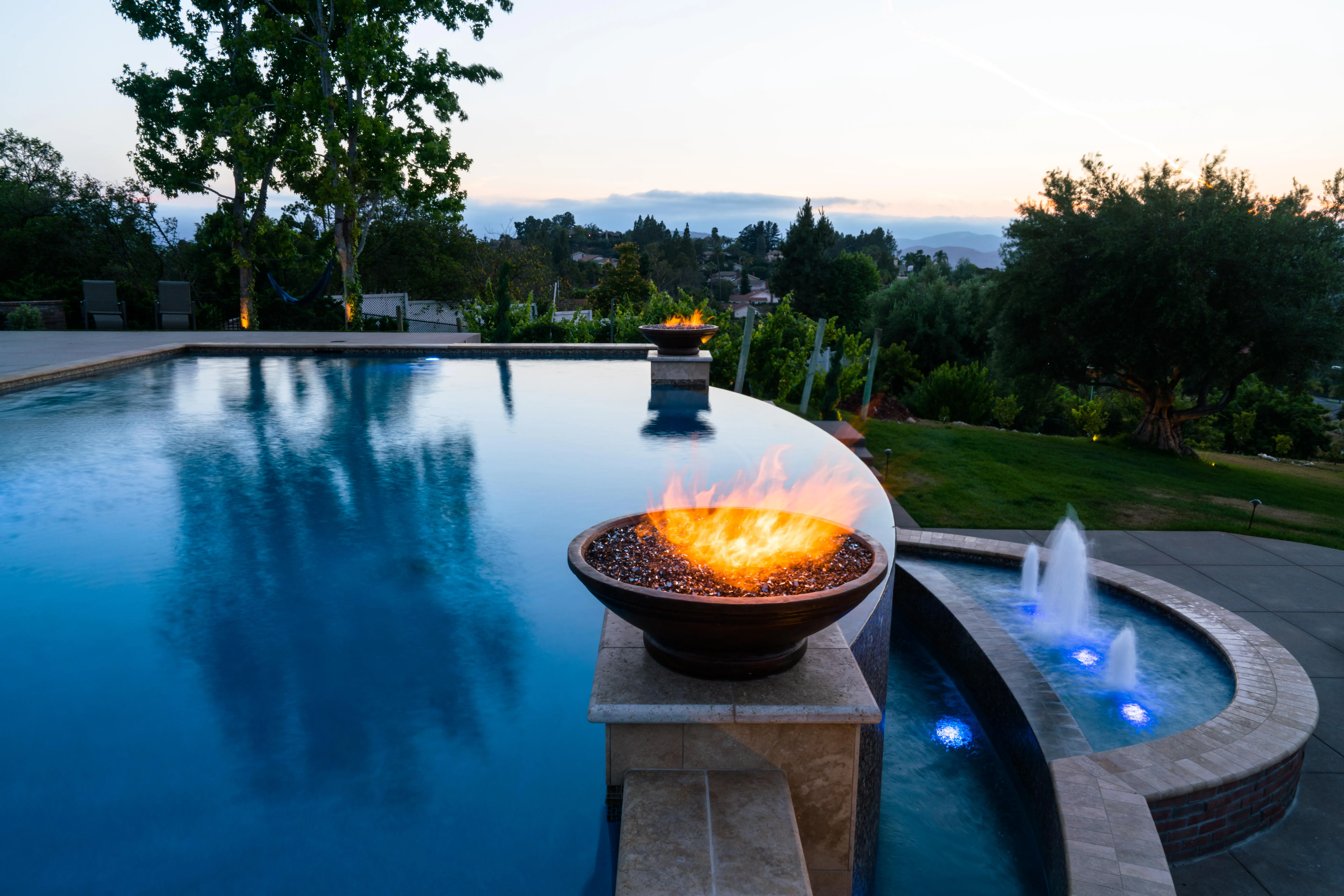 Add a specialty pool feature to your custom swimming pool or spa, such as a fire feature, waterfall or deck jets, a pool cover, safety fencing, specialty lighting in and around the pool, rockwork, or an accessibility feature.